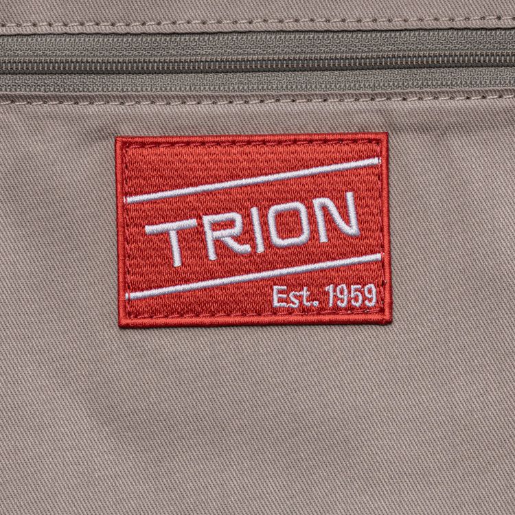 内部はマチありのオープンポケット2つ、ジッパーポケット1つ付きで、小分け収納に便利。開口部サイドには、キーホルダーなどが装着できるキーホルダーリングを付けました。