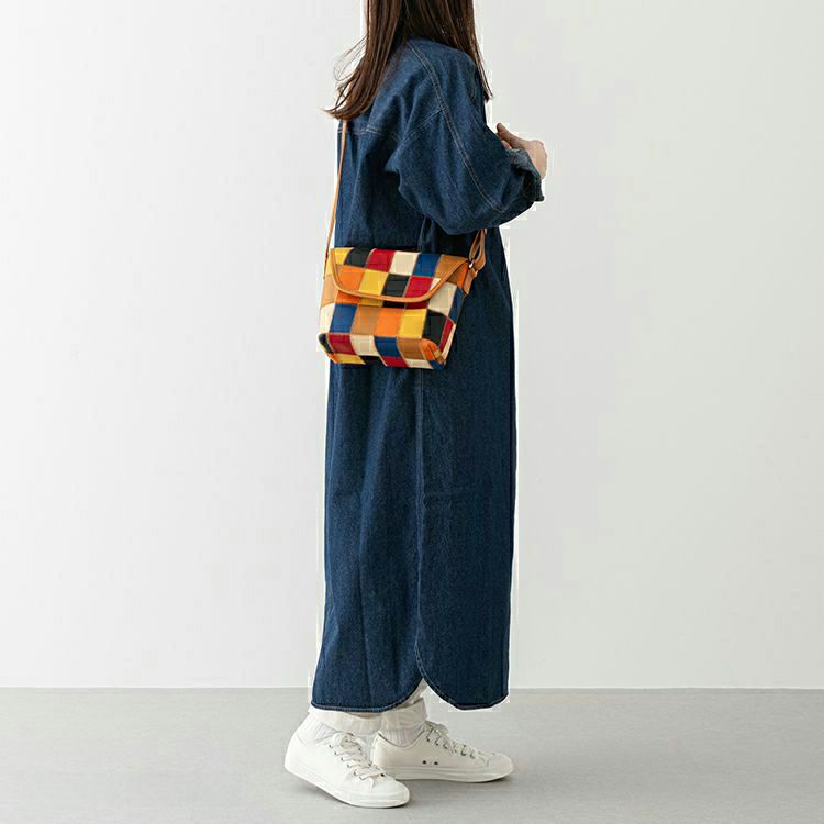 同じデザインで単色のブラックと一回り大きいサイズのショルダーもご用意。