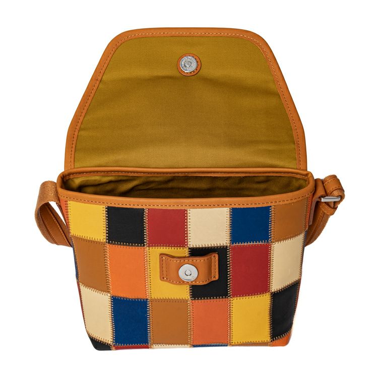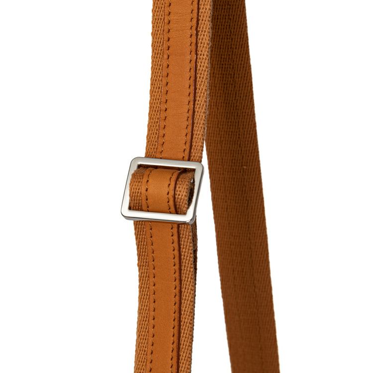 開口部はフラップタイプで、シンプルな動作での開けやすさが魅力。マグネットボタンで留める構造で、ボタンを少し立体的に留めることでフラップが少し浮いたような構造になり、開ける際に指に引っかかり、開けやすくしました。ショルダーストラップ裏面はコットン素材で、肌当たりを良くしました。