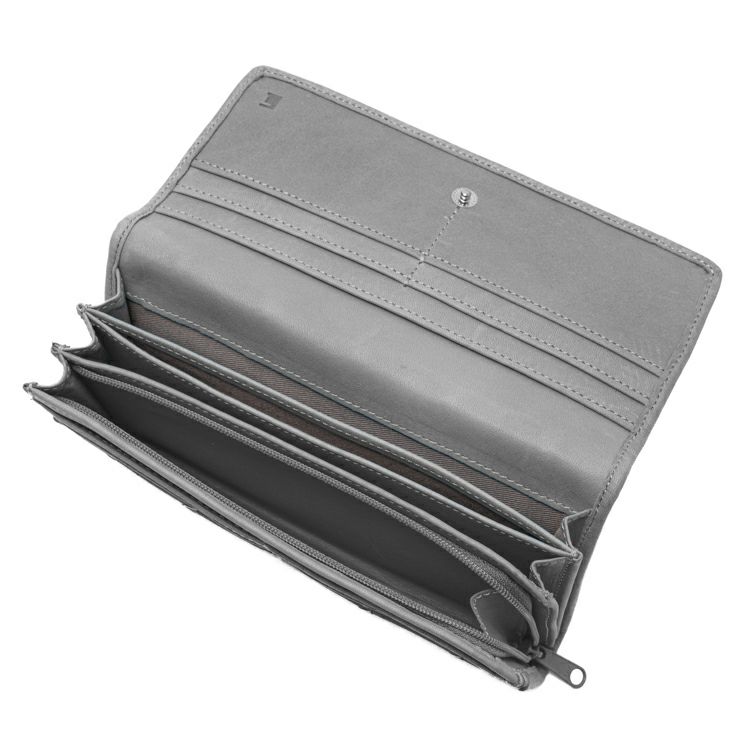 定番のフラップ式長財布に、限定カラー「グレー」が登場。