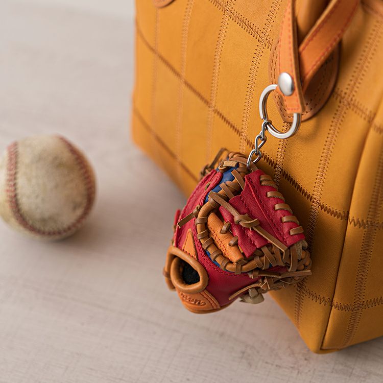 守備の要、キャッチャーが使うキャッチャーミット型キーチェーンをマルチカラーで作りました。その存在感は、バッグや鍵に添えれば、さりげなくも目を引くアクセントに。オンラインストアと直営店のみの限定モデルです。