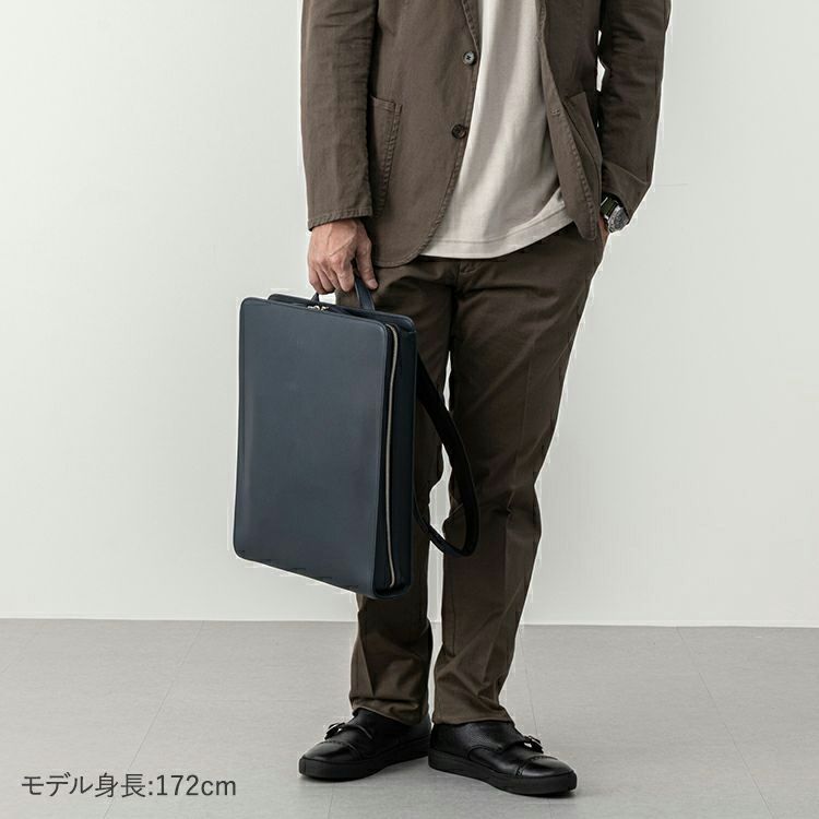 一枚革を贅沢に使用し、フラットな表情が上品に際立つレザーバックパック。ミニマルな見た目できちんと感が必要なビジネスシーンにも馴染みます。