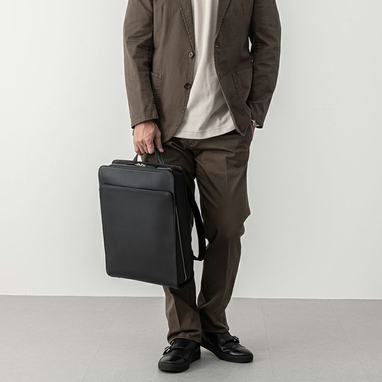 きちんと感と収納力を両立する、上質スクエアバックパック