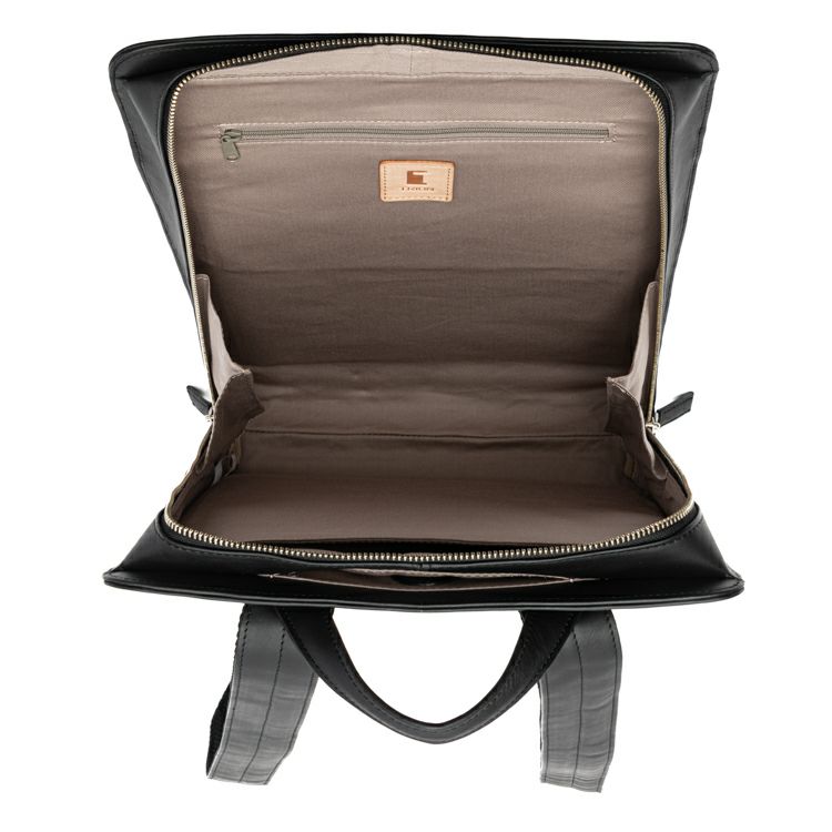 本革の品格と、大容量の実用性を兼ね備えたスクエア型レザーバックパック。リュックの手軽さがありながら、スーツにも馴染むきちんとした佇まいで、ビジネスシーンでも自然と溶け込みます。