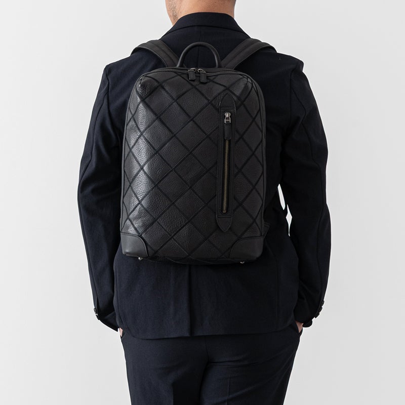 仕事の場に、品と格、さりげない個性を。シボ革の上品な質感と、使い込むほどに深まる風合いが魅力の本格レザーバックパック。両手が自由になる機能性と、ビジネスシーンに馴染む佇まいを両立した一点です。