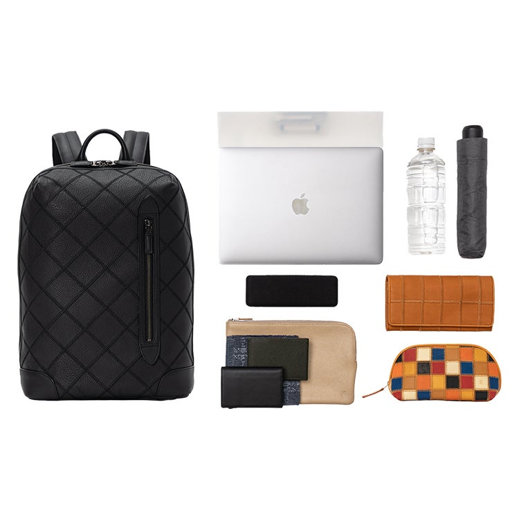 書類・PC・手帳・財布——必要なものをすべて背負いながら、両手が自由に。すっきりとした佇まいでオフィスに映え、会議室でもクライアントとの場でも品格を演出します。