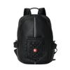 背中側はクッション材入りのメッシュ素材を採用し、長時間背負っても蒸れにくく快適です。また、背胴右側にスマホやパスケースを収納できる便利なジッパーポケット付き。開口部はダブルジッパーで大きく開く構造。内装生地は上品なベロア調で、オープンポケット2つ、ジッパーポケット1つ付きです。
