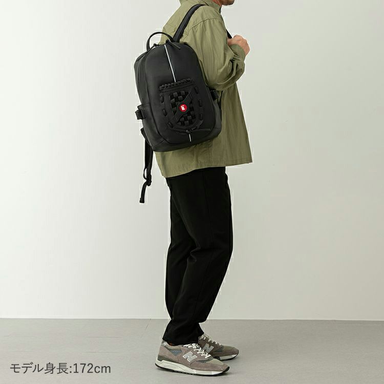 野球グローブに使われるグラブレザーを使用。丈夫な作りで触り心地や匂いもグローブそのもの。バッグ正面にグローブのウェブ部分をあしらったデザインは、オープンポケットとしてスマホやカードケースも収納できます。正面上部のホワイトラインは、野球グラブの指部分に用いられる「ハミダシ」と呼ばれる構造を採用。