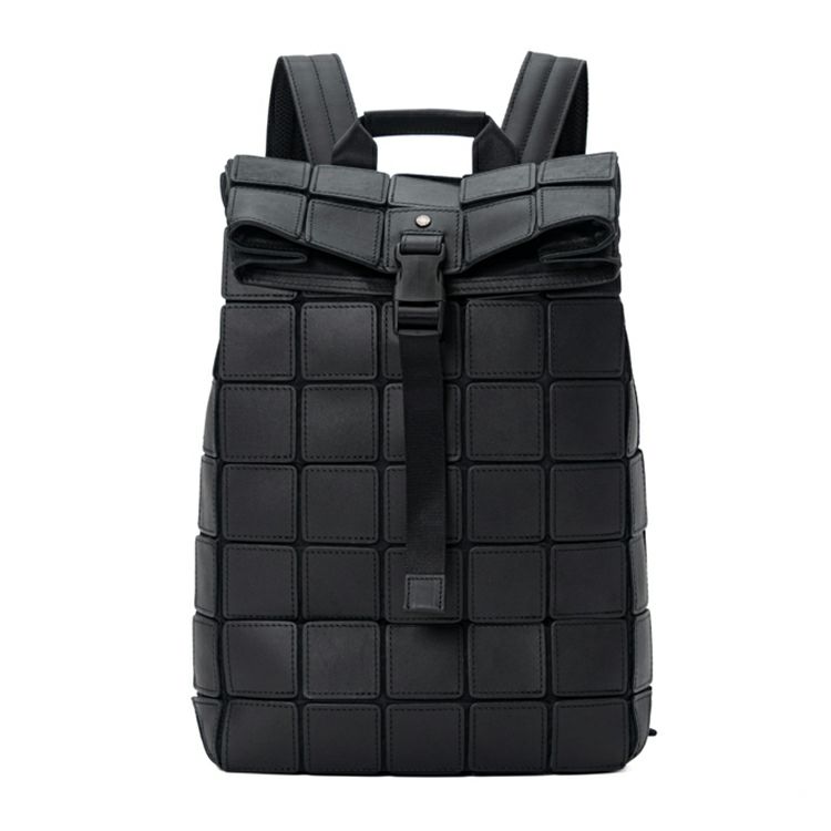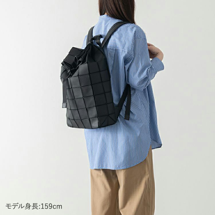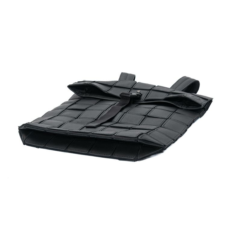 上質なレザーパーツと、ほどよい光沢を帯びた高級感のあるナイロン素材を組み合わせた、独自のコンビネーション。正方形に切り出した革の間から覗くナイロンが、視覚的にも軽やかで、フォルムも自在に変化。さらに、ナイロンに正方形のレザーパーツを3mmの間隔で1枚ずつ縫い付けるという、緻密で高度な技術を駆使。軽量でしなやかなだけでなく、使い込むほどに味わいを増す本革ならではの魅力も感じられます。