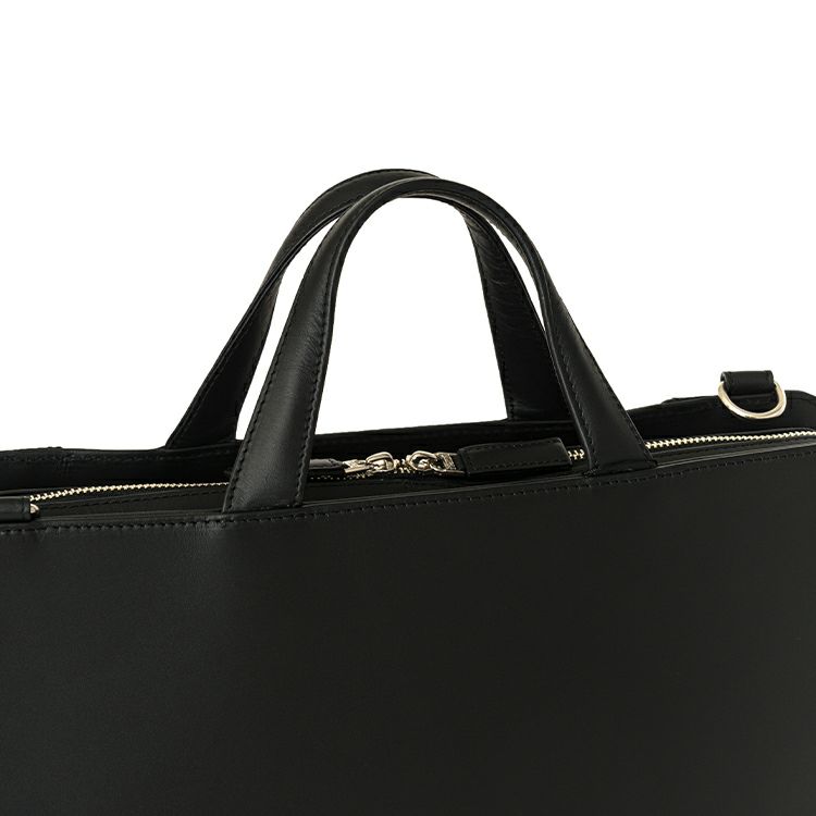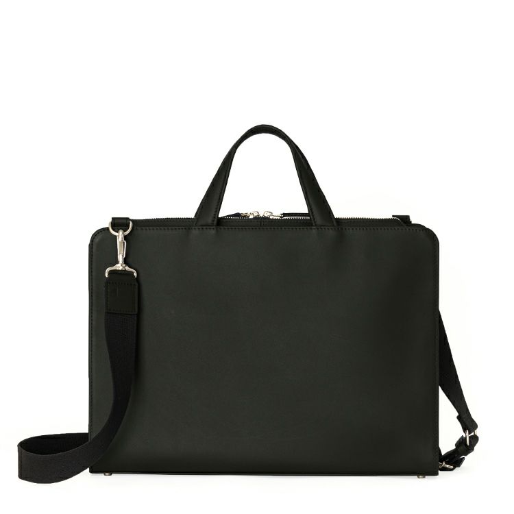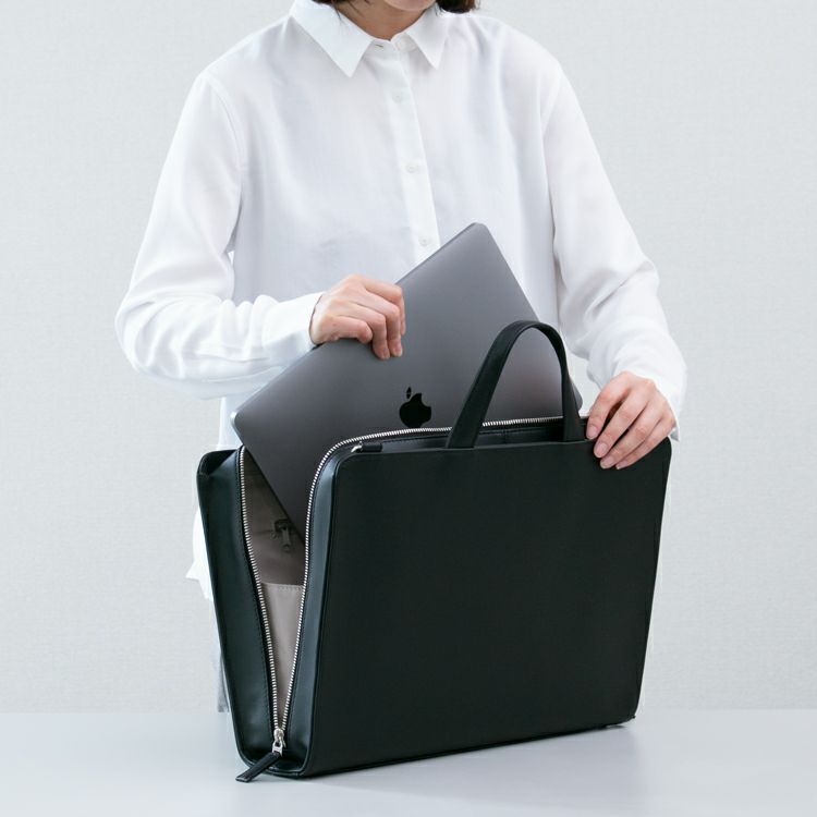 スーツにもカジュアルにも合うペーパーレスに対応したミニマルデザイン。13インチPC/A4対応サイズ。丈夫で軽いコーティングレザーを使用。