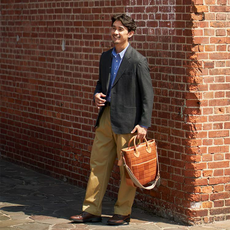 スーツにもビジカジにも持てる、さりげない個性が魅力のレザートート。野球グローブに使われるグラブレザーと縫製技術で丈夫さと軽さを実現。