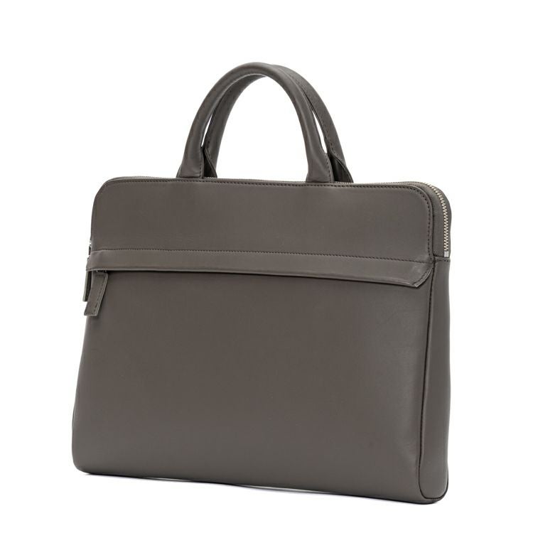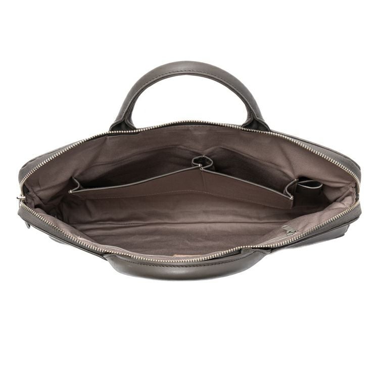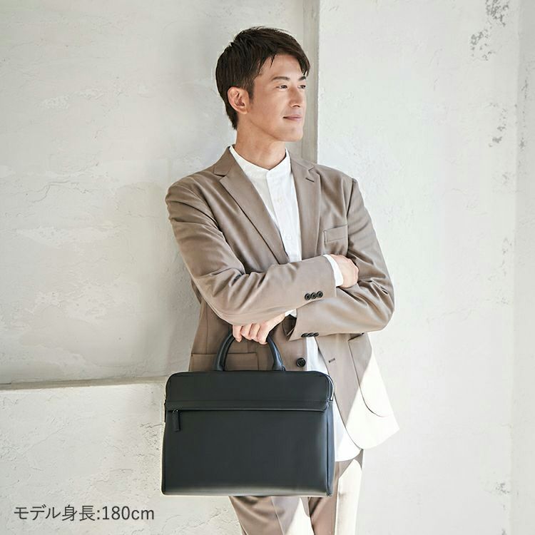 コンパクトでスッキリとしたフォルムに、必要十分な収納力を備えた薄マチブリーフケース。A4サイズや13インチのノートPCが無理なく収まり、日常のビジネスシーンにちょうどいいサイズ感です。