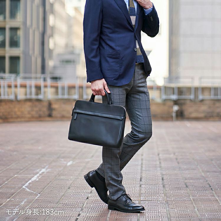 コンパクトでスッキリとしたフォルムに、必要十分な収納力を備えた薄マチブリーフケース。A4サイズや13インチのノートPCが無理なく収まり、日常のビジネスシーンにちょうどいいサイズ感です。