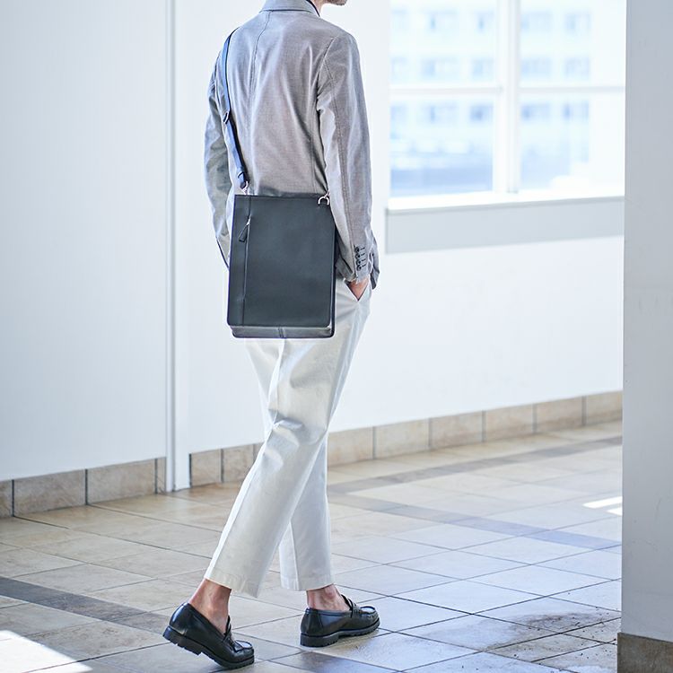 納富さんが考えたイメージは「仕事道具をワンパッケージで持ち歩ける」バッグであること。A4書類が縦にジャストで入り、クッション材付きのポケットでタブレットも安心して持ち運べます。