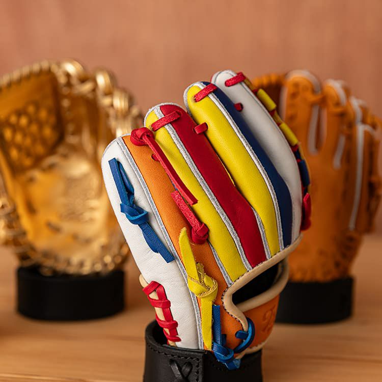 王道のグラブカラーであるTan(タン)、守備の名手に贈られる“栄誉”の象徴でもあるGold(ゴールド)、TRIONらしい多彩で遊び心ある色づかいMulti(マルチ)の3色をご用意。どのカラーも、飾る空間や贈る相手に合わせて“選ぶ楽しみ”が味わえます。