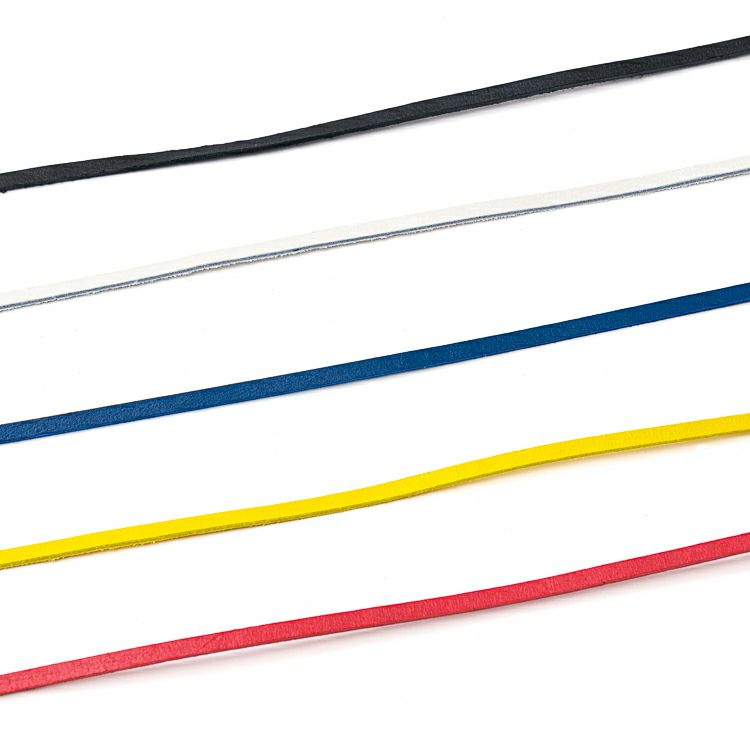 レーストートミニをカスタマイズできる革レース(革紐)。5色の中からお好きなカラーを選んで、別売のレーストートミニの革レースを付け替えることで、気軽にセミカスタムが楽しめます。