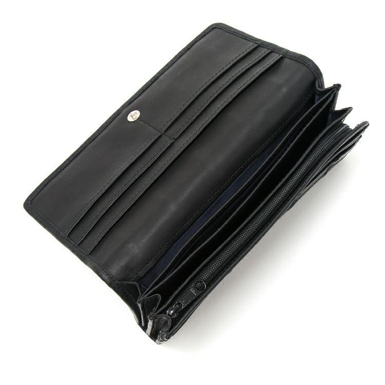 パネルの個性的なデザインと、経年変化による風合いの変化をお楽しみいただける本革長財布。