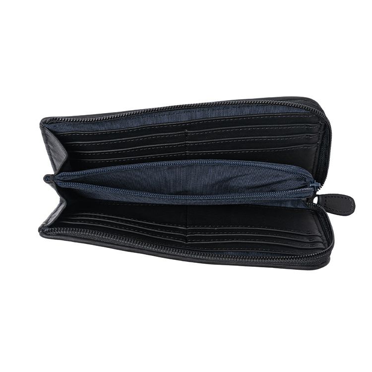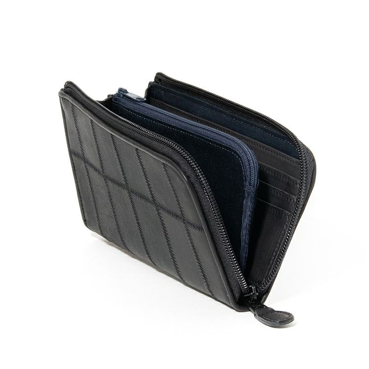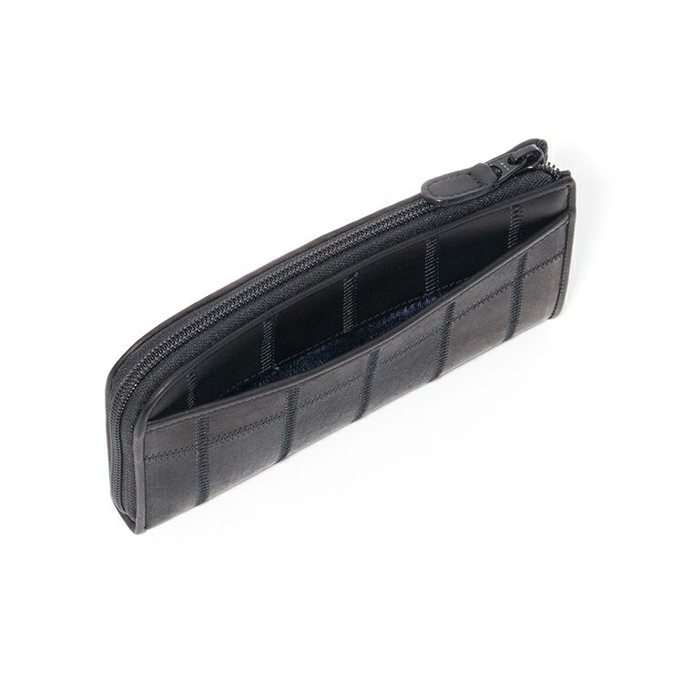 カードもたっぷり入る収納力がありながら、すっきり持てる軽さと薄さをバランスよく兼ね備えたL字ファスナー長財布。