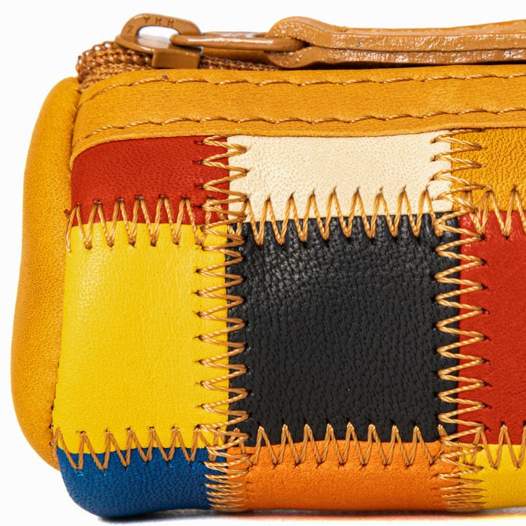 7色もの正方形のパーツを組み合わせ、バッグから取り出すたび気分が上がるマルチカラーで、同柄のバッグやお財布とお揃いで合わせても。上質な本革と個性的なデザインはメンズレディース問わず、ギフトにもおすすめです。