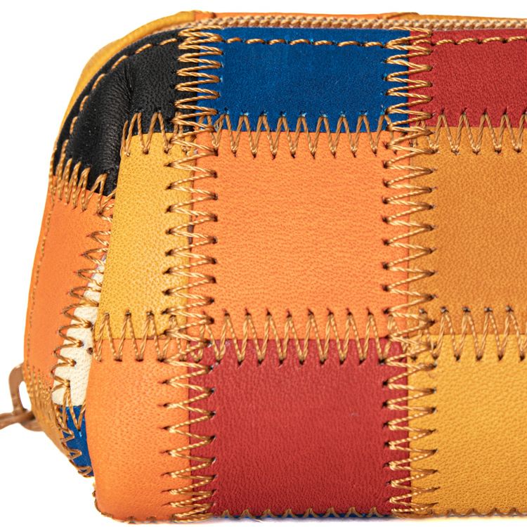 7色もの正方形のパーツを組み合わせ、バッグから取り出すたび気分が上がるマルチカラーです。バッグやお財布とお揃いで合わせても。上質な本革と個性的なデザインはメンズレディース問わず、ギフトにもおすすめです。