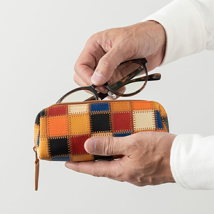 ファスナーでぐるりと大きく開く構造で、中身が取り出しやすいつくりに。メガネケースはもちろん、ペンケースやガジェットポーチなど、様々な用途にお使いいただけます。