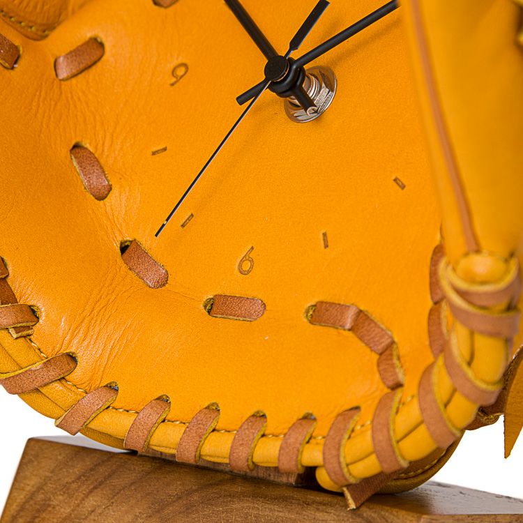 そこで、付加価値としてグラブのポケット面に時計をつけた仕様を開発。生活に馴染むインテリアとしてグラブを生まれ変わらせました。