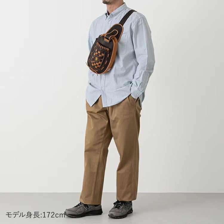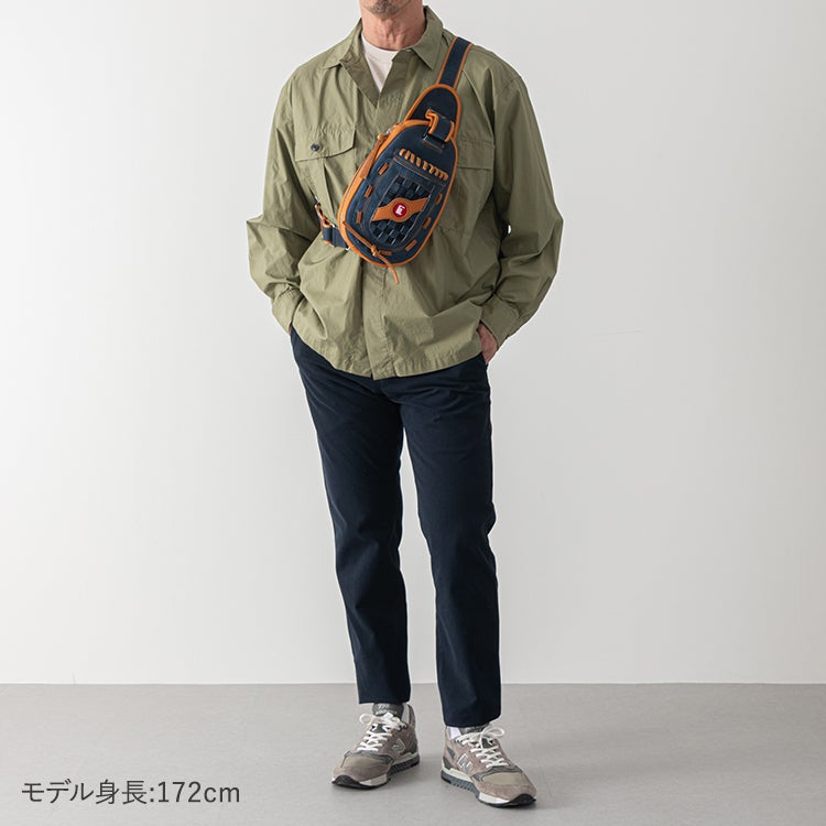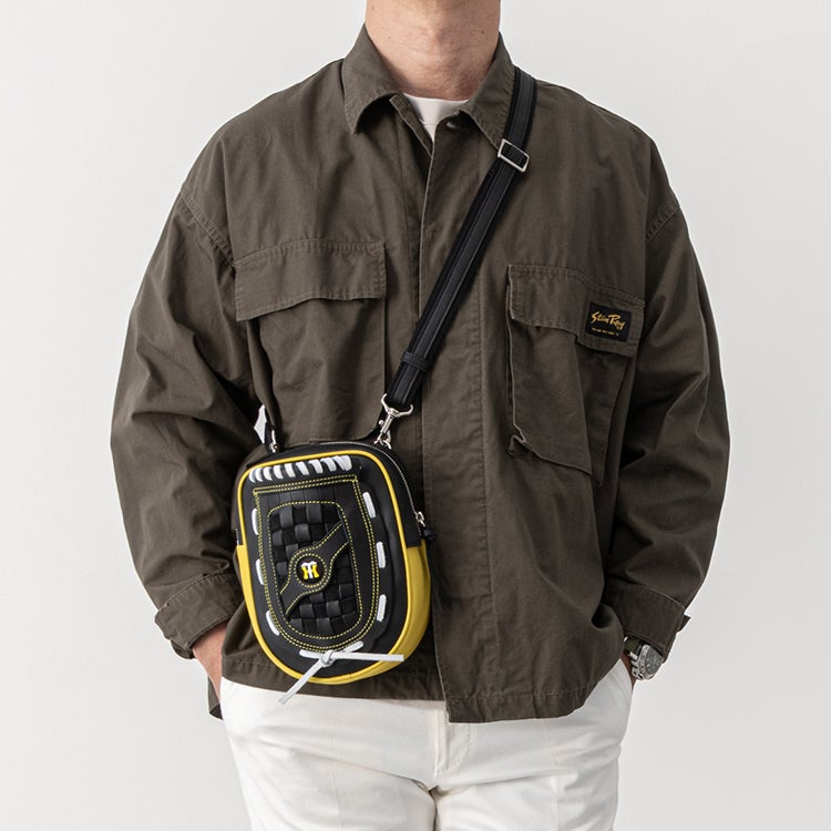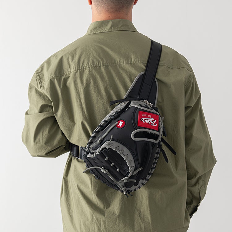 様々な大きさが揃うシリーズの中で、最もコンパクトなサイズ。グローブバッグの象徴ともいえるウェブを前面に貼り付けました。