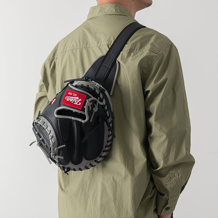 野球グローブを製造するトライオンだからこそできる、本格的なグローブデザイン。バッグとしての使いやすさにもこだわった仕様です。
