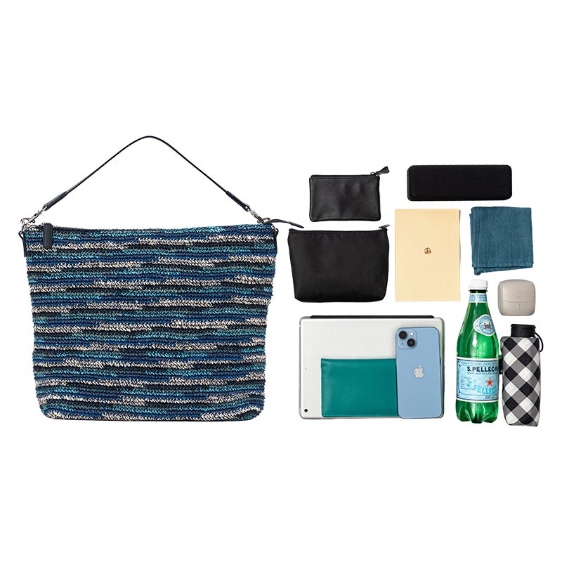 フィリピンの職人が一目一目編み上げた、2WAY仕様のバスケットショルダーに2色のマルチカラーが登場。鮮やかな色の重なりと、荷物に合わせてシルエットが変化する柔らかな素材感が、春夏の外出を軽やかに彩ります。