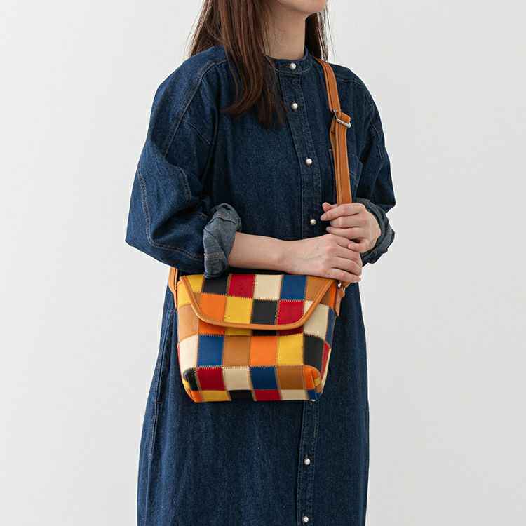 同じデザインで単色のブラックと一回り大きいサイズのショルダーもご用意。