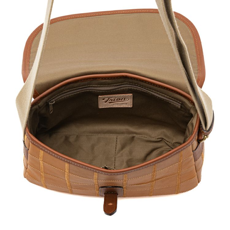 どこか懐かしさを感じるフラップ型のフォルムに、革の質感とニュアンスが重なる佇まい。