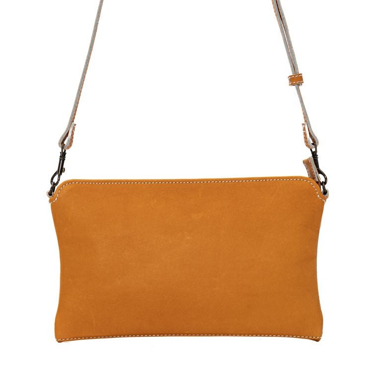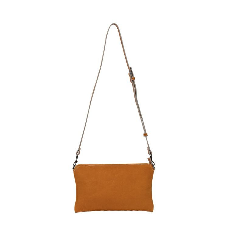 マチなしで身体にフィットし、動きを邪魔しないスマートさが魅力。デザインとして、野球グローブの指部分に用いられる「ハミダシ」と呼ばれるあしらいをサイドのマチに応用。ハミダシをつけることで強度が増し、バッグの形を支える背骨のような役割もプラス。重さも約300gと本革とは思えない軽さを実現。
