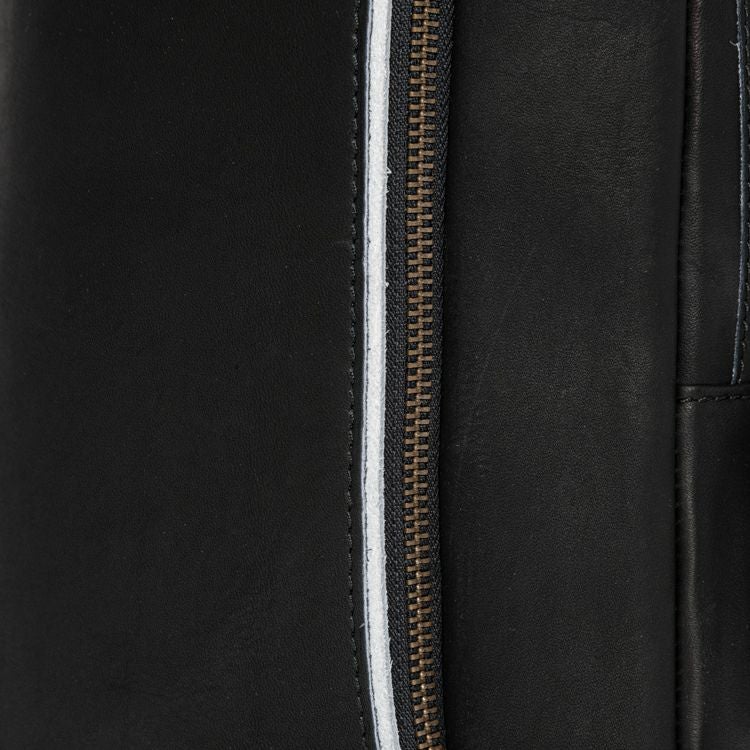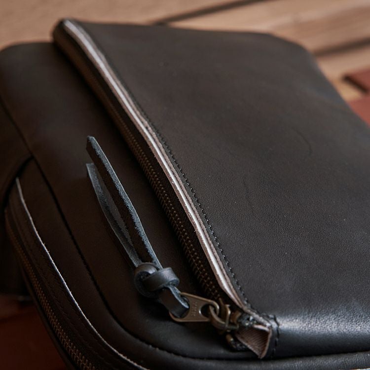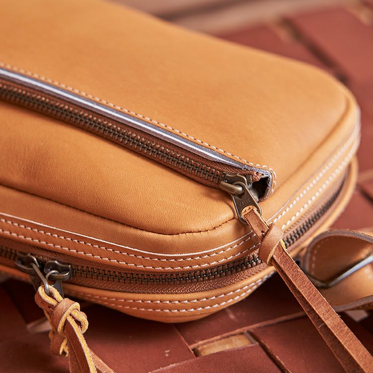 ジッパーの引き手に、野球グローブに使われるレース紐を採用しました。丈夫に加工した革の紐で、ジッパーとしての強度も確保。