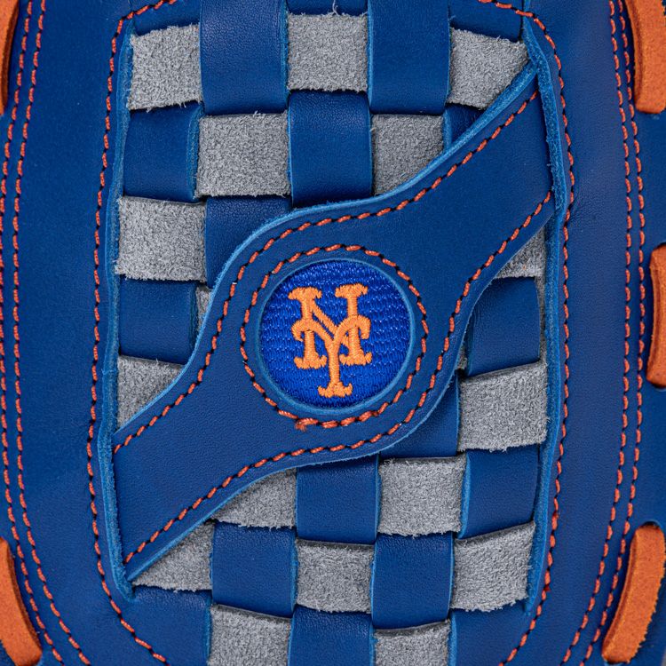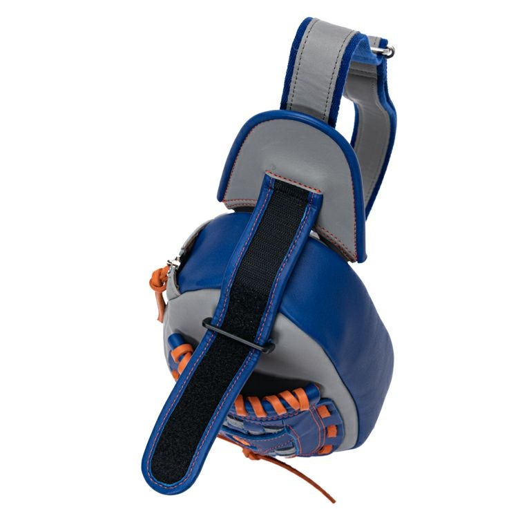中央にはメッツのロゴを配置。前面にはグローブのウェブ構造を立体的に再現しました。縫い目のオレンジがリズムを刻み、目を惹くアクセントに。