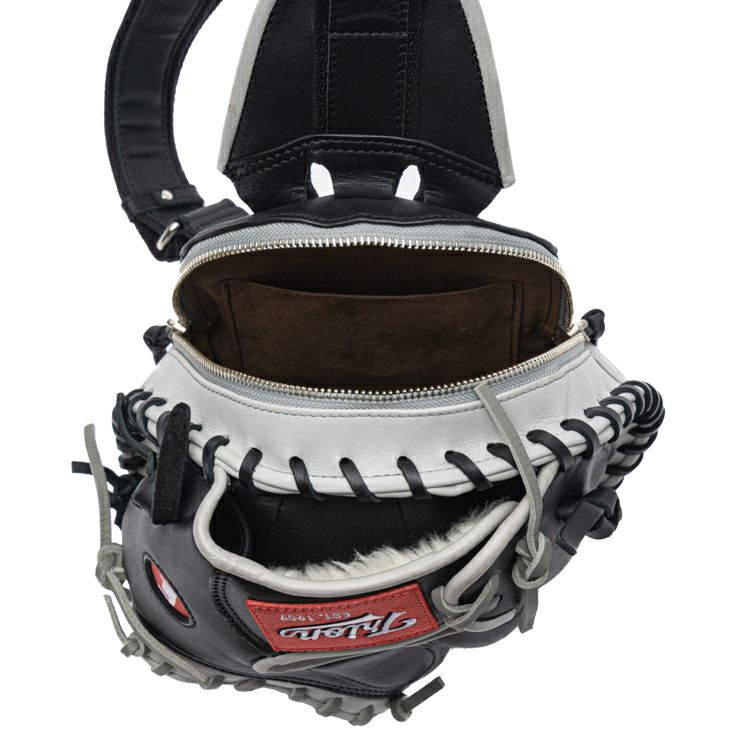 本物のキャッチャーミットを、そのままバッグに