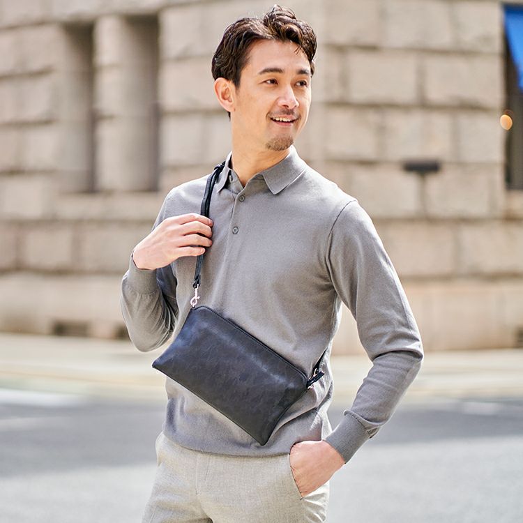 スマホと財布とキーケースなど、必需品をコンパクトに収納できます。細めのショルダーストラップは取り外し可能で、クラッチやポーチとしても使える2WAY仕様。日常使いはもちろん、大きめのかばんに忍ばせてバックインバックに、旅先や出張先で貴重品用バッグとしてお使い頂くのもおすすめ。
