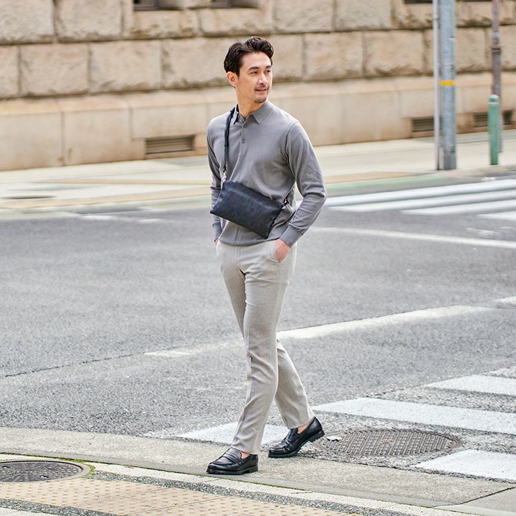 シリーズの中で最もミニマルなサイズ。身体にフィットし、動きを邪魔しないスマートさが魅力。無駄を削ぎ落としたデザインで、重さも約350gと本革とは思えない軽さを実現しました。