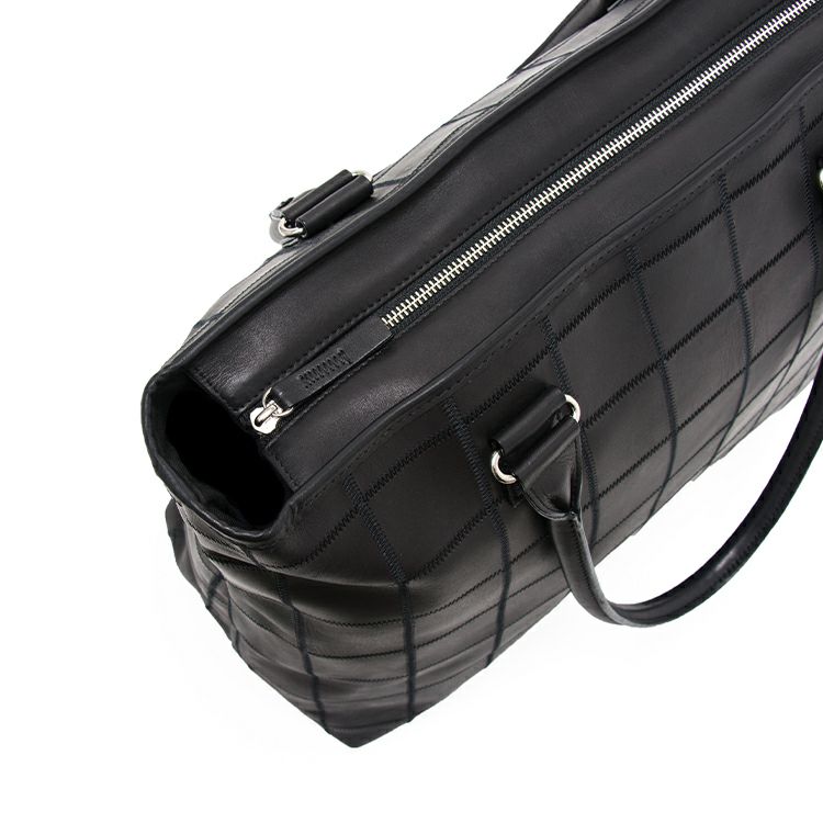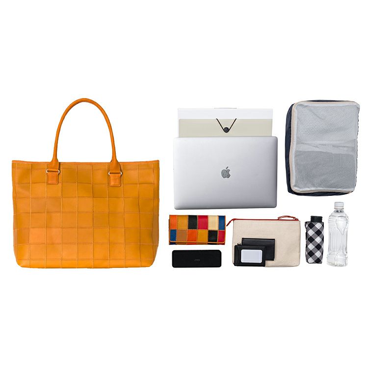 グラブレザーの丈夫さとタフさを持ち合わせ、普段使いできる大きめトートバッグ。パネルの形を正方形にしたことで、規則性のある落ち着いた印象に。