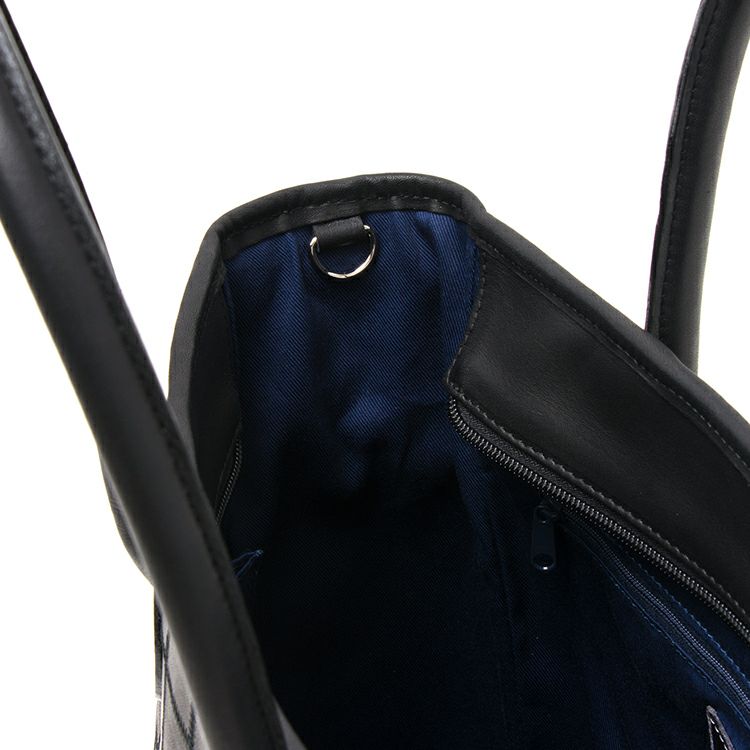 A4や13インチPCも収納可能な実用的なサイズ感。開口部はジッパー付きの天マチ仕様で、中身が見えず安心して持ち運べます。取り外し可能な底板が付属し、重い荷物を入れても形崩れを防ぎます。