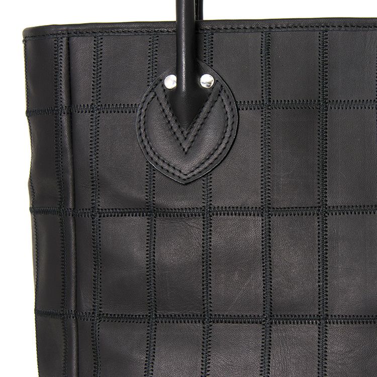 縦型トートバッグのパッチワークレザー