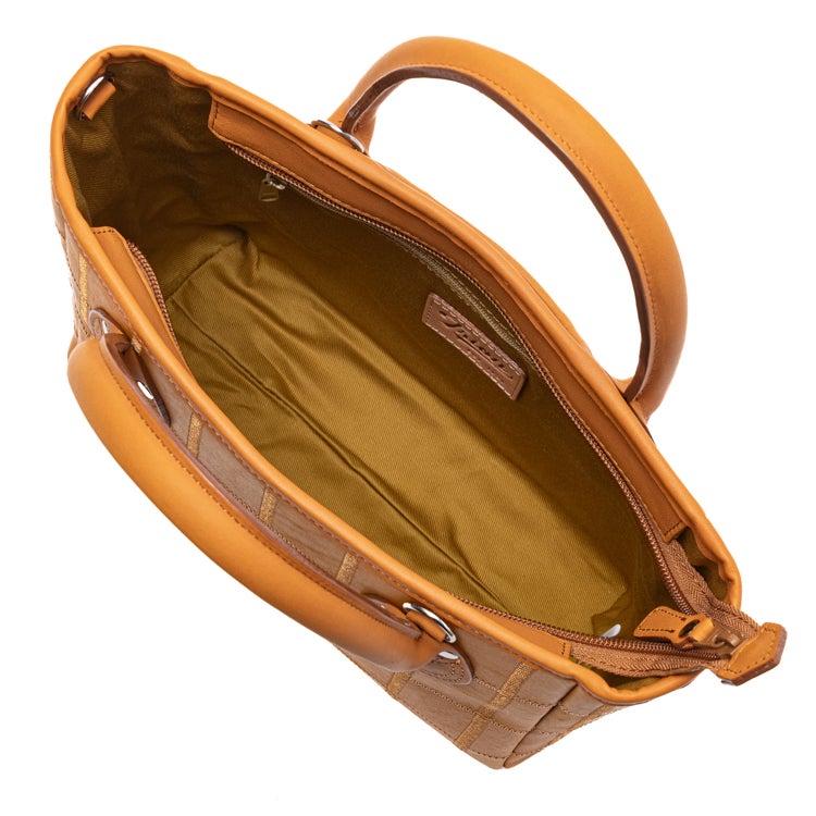 デザインアクセントとして、ジッパーの引き手とジッパーエンドの革タブはそれぞれ野球のバットとホームベースの形をモチーフに、外ポケットの縁取りや内装の刺繍ラベルなど、随所に「野球」を連想させる遊び心をプラス。ハンドルの付け根のリーフ状のデザインと、きらりと光る二つのカシメもポイントです。