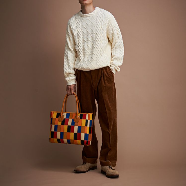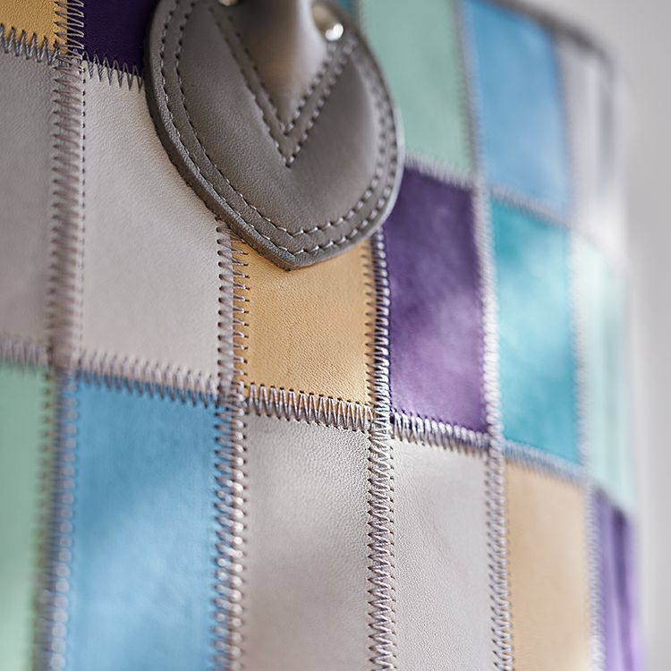 独自の技術でグラブレザーをステッチで繋ぎ合わせることで、一枚一枚異なる表情の革を活かしたパッチワークデザインに。すべてが一点ものの特別な仕上がりです。
