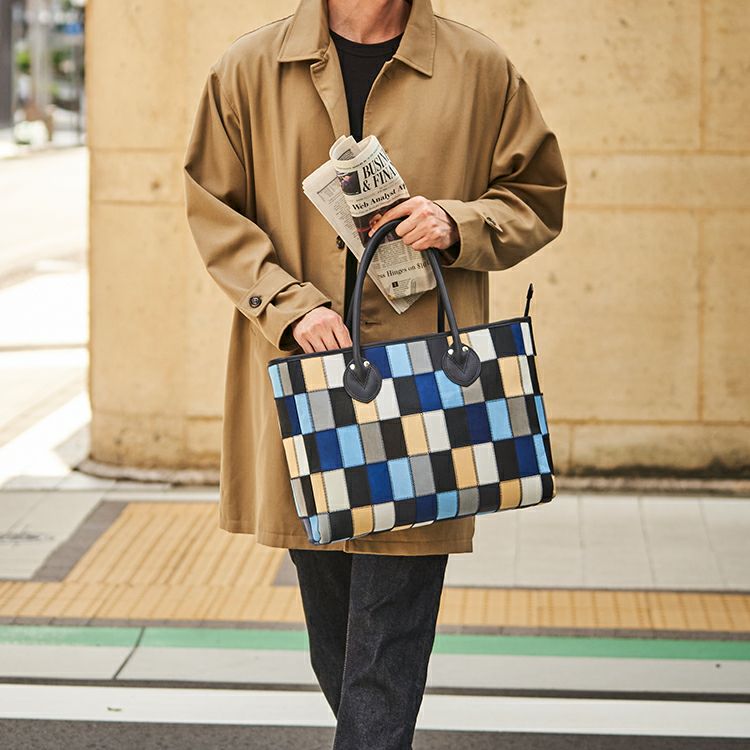 B4や16インチPCも収納可能な実用的なサイズ感。開口部はジッパー付きの天マチ仕様で、中身が見えず安心して持ち運べます。取り外し可能な底板が付属し、重い荷物を入れても形崩れを防ぎます。