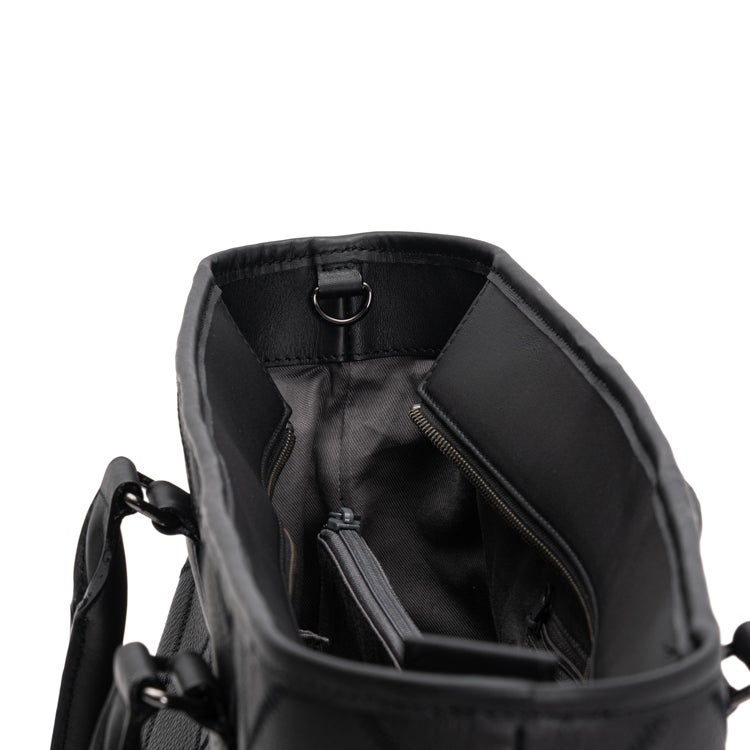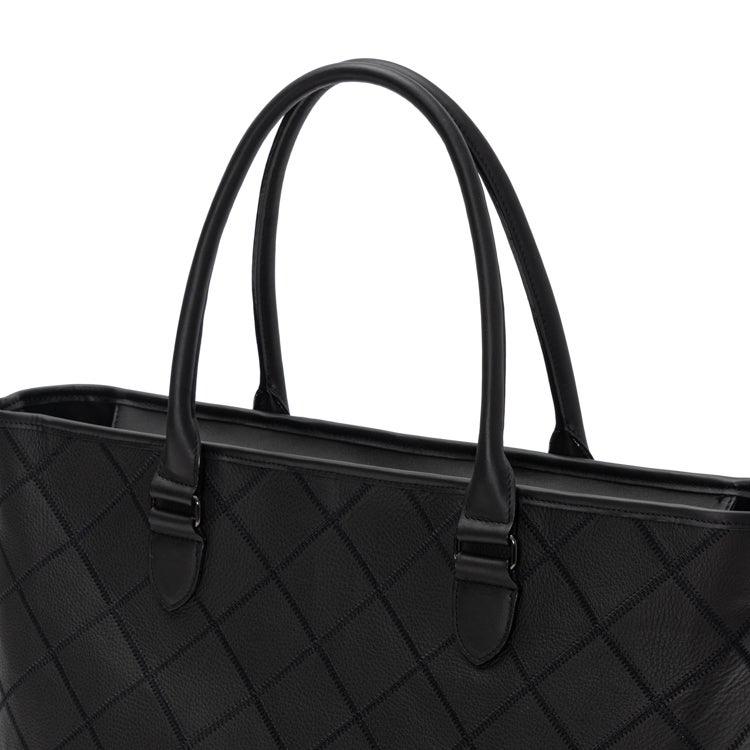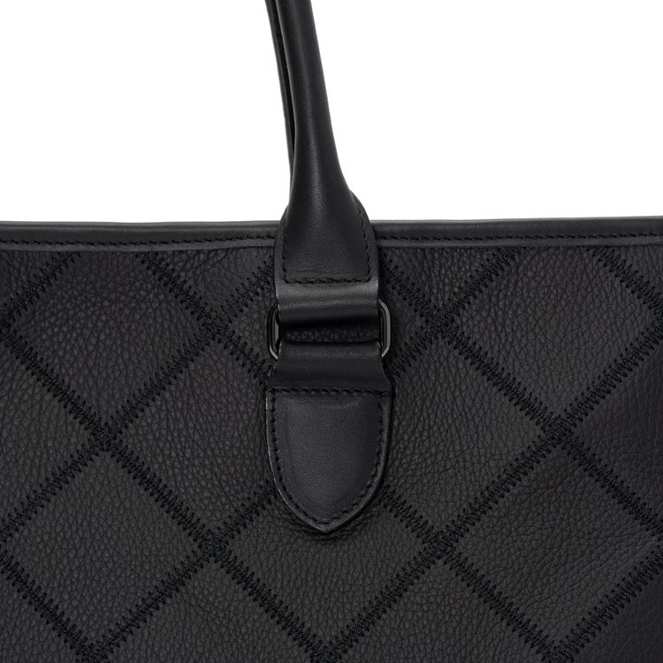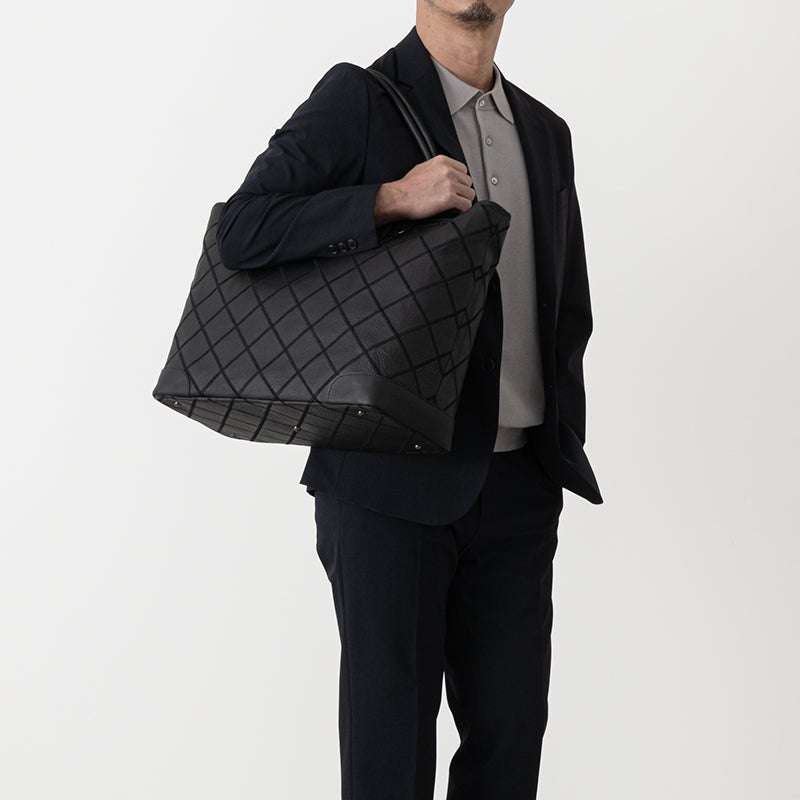 素材には、革を揉むことで細かい皺(シボ)をつけたタンブルレザーを採用。上品な佇まいはもちろん、傷や汚れが目立ちにくいという実用的なメリットも兼ね備えています。パネルシリーズらしいダイヤ柄のステッチ模様はそのままに、ビジネスシーンにさりげない個性を添えます。毎日持ち歩くビジネスバッグだからこそ、見た目の美しさと使いやすさを両立させました。