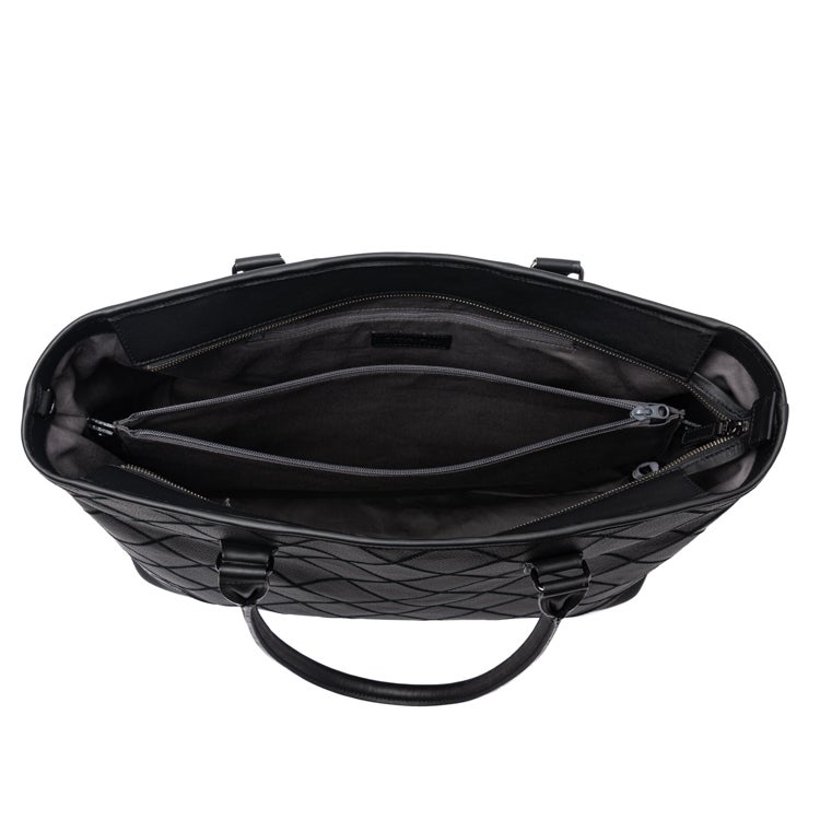 パネルシリーズらしいダイヤ柄のステッチ模様が、シンプルなビジネスバッグに少しの個性と表情を添えます。主張しすぎず、でもちゃんとTRIONらしい。そんなさりげないデザインのこだわりです。