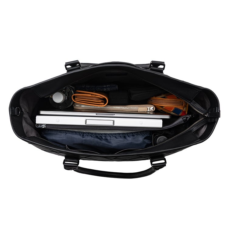 書類・PC・手帳・財布——必要なものをすべて収めながら、すっきりとした佇まいでオフィスに映えます。会議室でも、クライアントとの場でも、品と格を自然に演出してくれます。