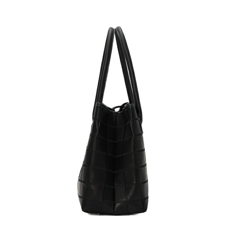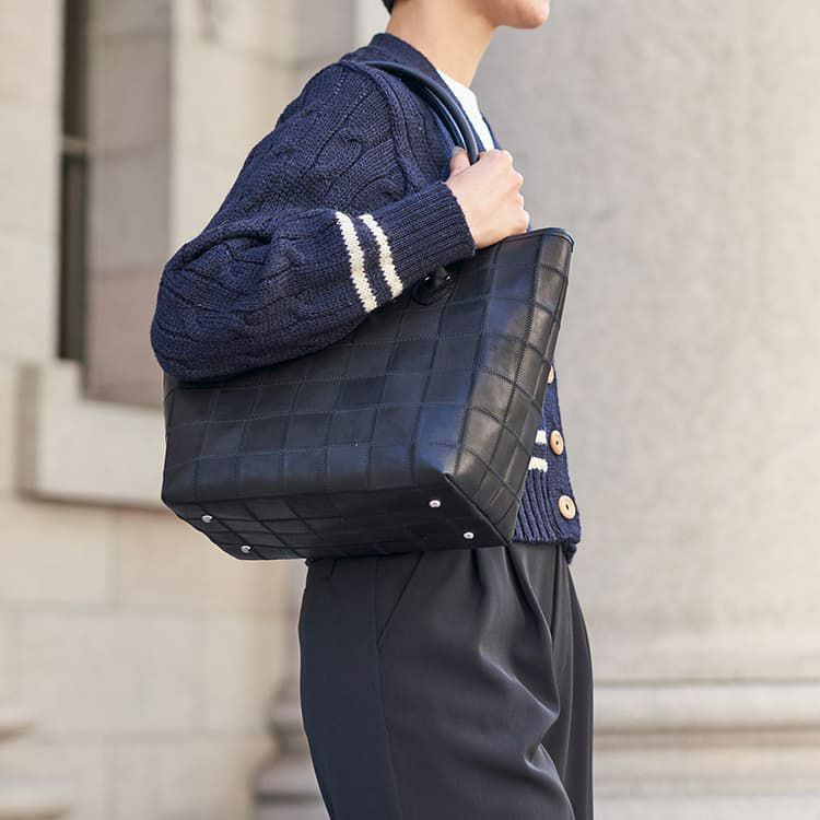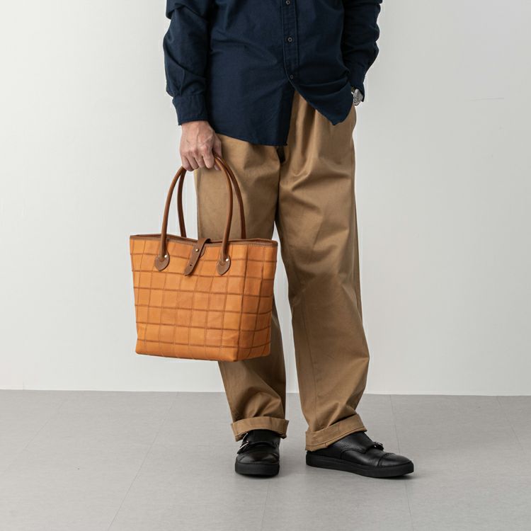 長財布やポーチ、スマートフォン、手帳などがしっかり収まり、必要なものをすっきり持ち運べるミディアムサイズの本革トート。