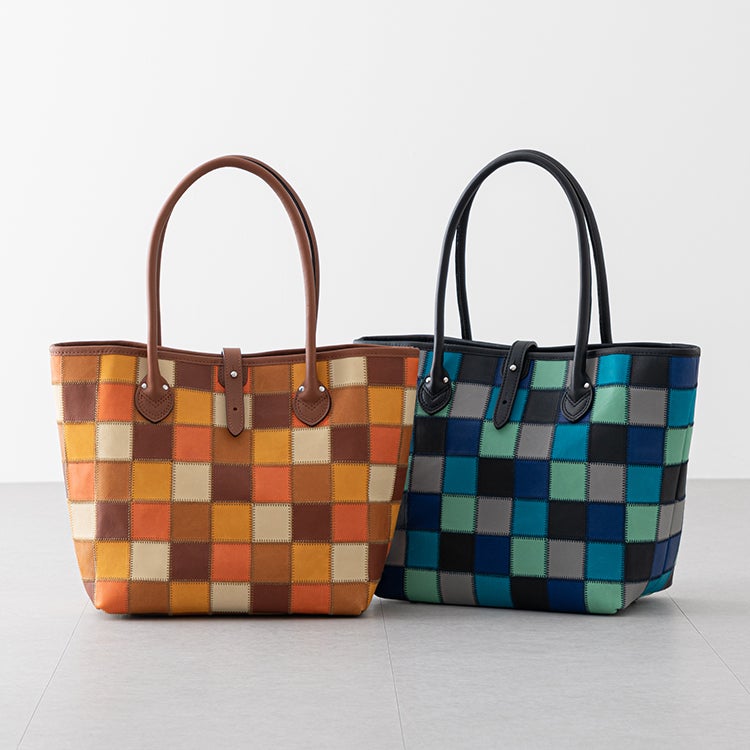 今季の春夏限定カラーとして、Honey BeigeとPepper Mintの2色が登場しました。定番のマルチカラーが時代を問わない色使いであるのに対し、この限定2色はその季節のトレンドカラーから生まれた、今だけのパネルです。オレンジ・イエロー・ベージュが弾けるHoney Beigeと、ミント・ブルー系が涼やかなPepper Mint。パネルのレザーカラーだけでなく、ステッチの糸色やハンドルの革まで、それぞれの色合いに合わせてこだわりました。毎シーズン同じ色は作れない、数量限定の2色です。