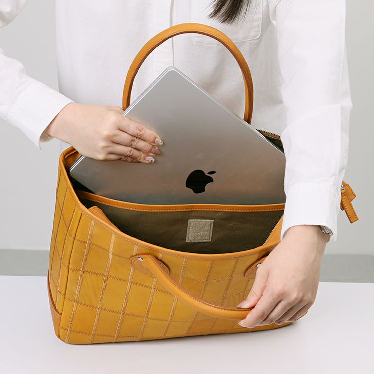 内装には13インチPCなど持ち運びしやすいよう専用ポケットを追加。さらに、モモサイズも微調整し、TRIONロゴ入りのリベットを使用することで、ビジネスシーンにふさわしいスマートな佇まいに。きちんと感と機能性を兼ね備えた、現代の仕事バッグです。