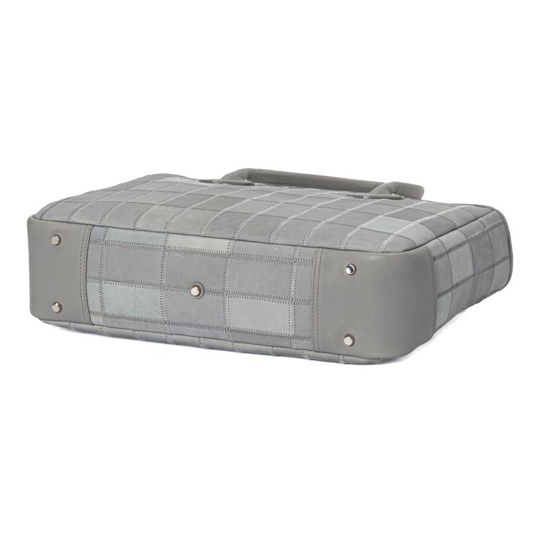 A4/13インチPC対応サイズで、内装にはノートPCなど持ち運びしやすいよう専用ポケットを装備。底びょう付きで床置きの安定感を実現。サイド下部には補強レザーを一枚重ね、型崩れを防ぎながら耐久性もプラス。